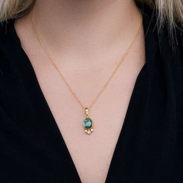 Gurhan Rune Oval Green Tourmaline & Diamond Pendant