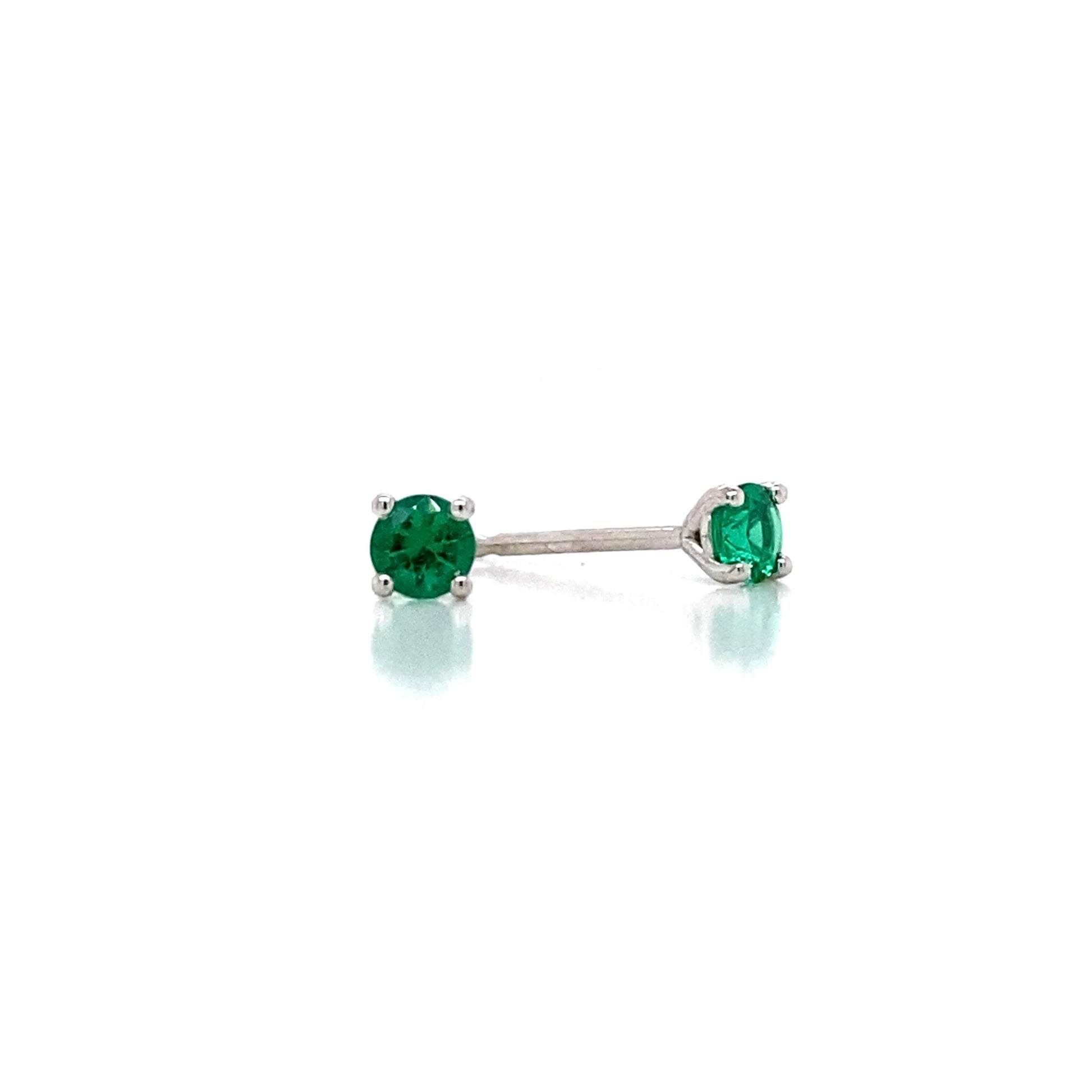 14K yellow gold stud earrings in (3) prong martini setting with (2) round emeralds totaling .44cts. The earrings have post backs.