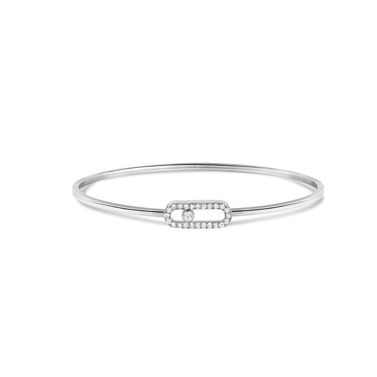 18K white gold Move Uno MM flex pavé bangle set with (26) round white diamonds totaling .34cts. Color: G; Clarity: VS1.