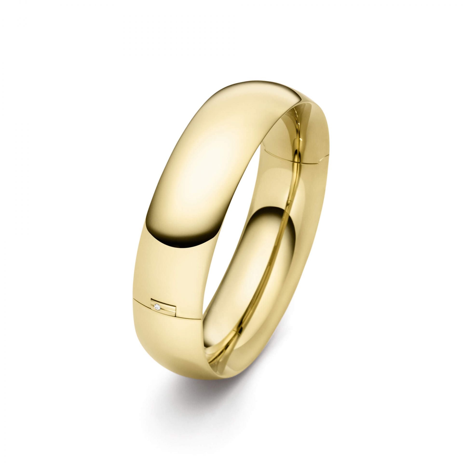 18K yellow gold Navette 17 mm bangle with (1) round diamond weighing .015cts, Color: G; Clarity: VVS-VS.