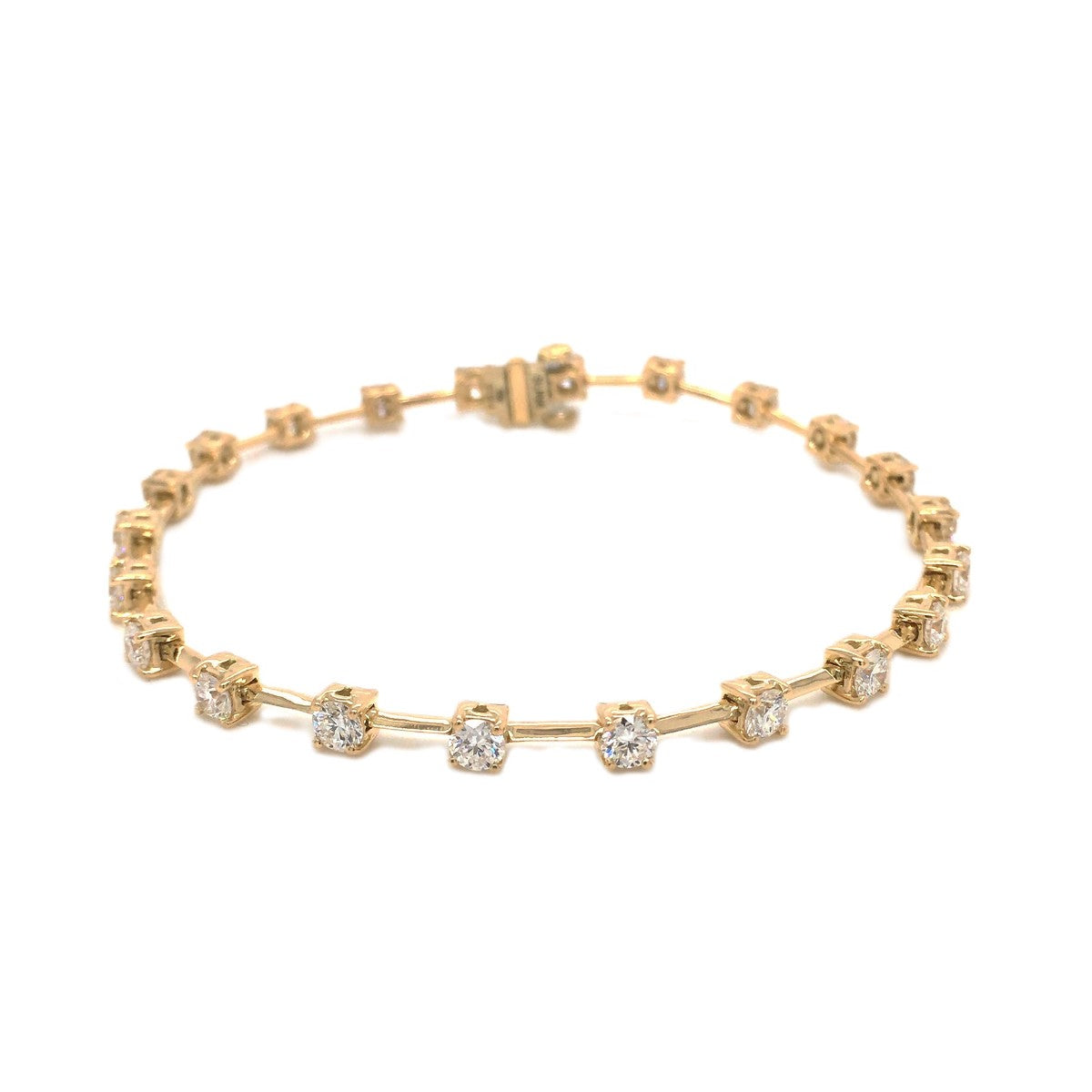 18K yellow gold wire bracelet set with (22) round diamonds totaling 2.57cts, Color: G; Clarity: VS. The bracelet is 6 7/8 inches.