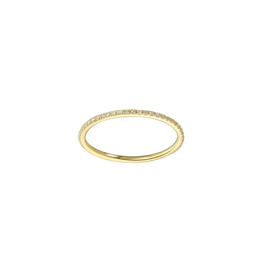 14K yellow gold eternity band with (49) round diamonds totaling .15cts. Finger size 6.