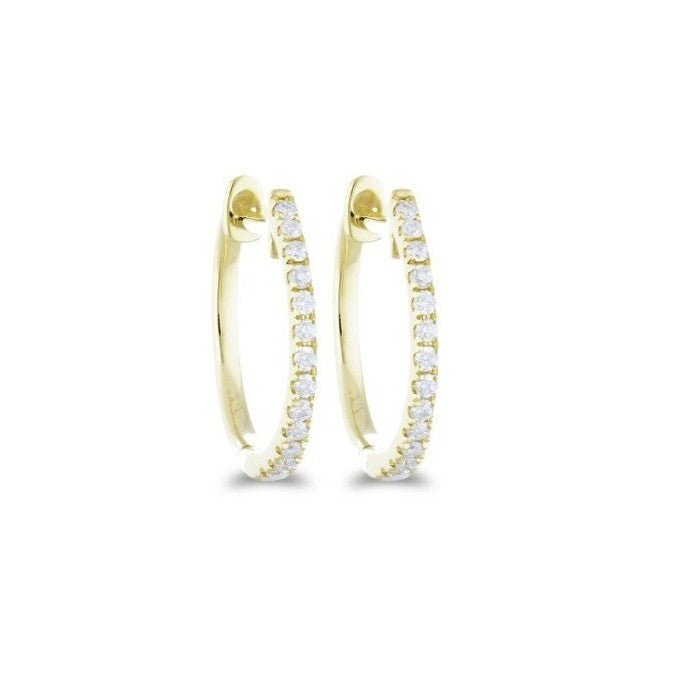 14K yellow gold hoop earrings set with (26) round diamonds totaling .10cts.