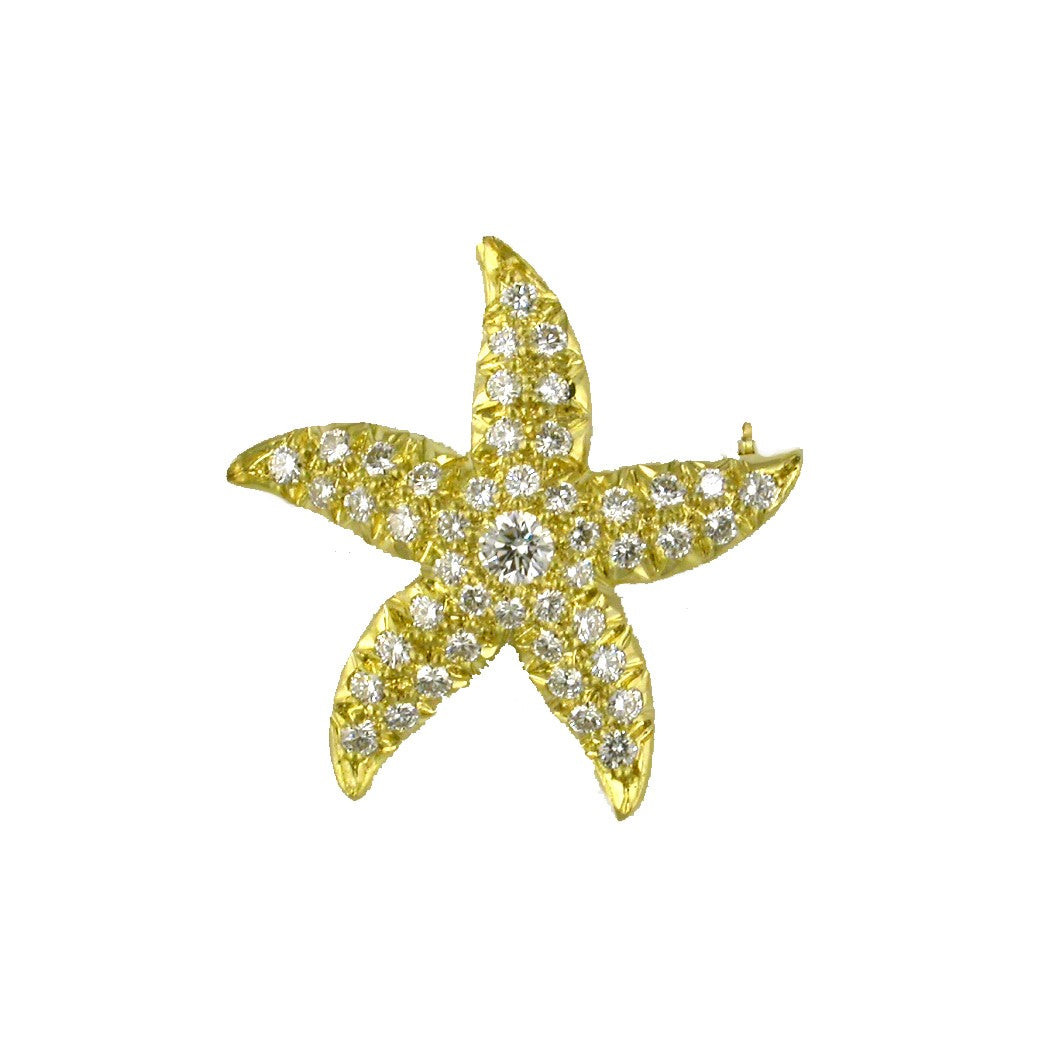 18K yellow gold starfish pin set with (46) round white diamonds totaling .52cts.