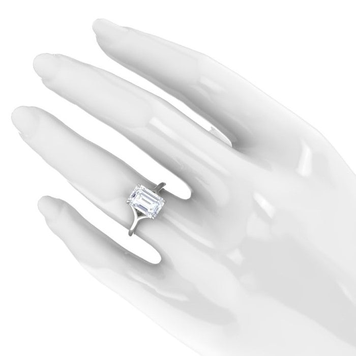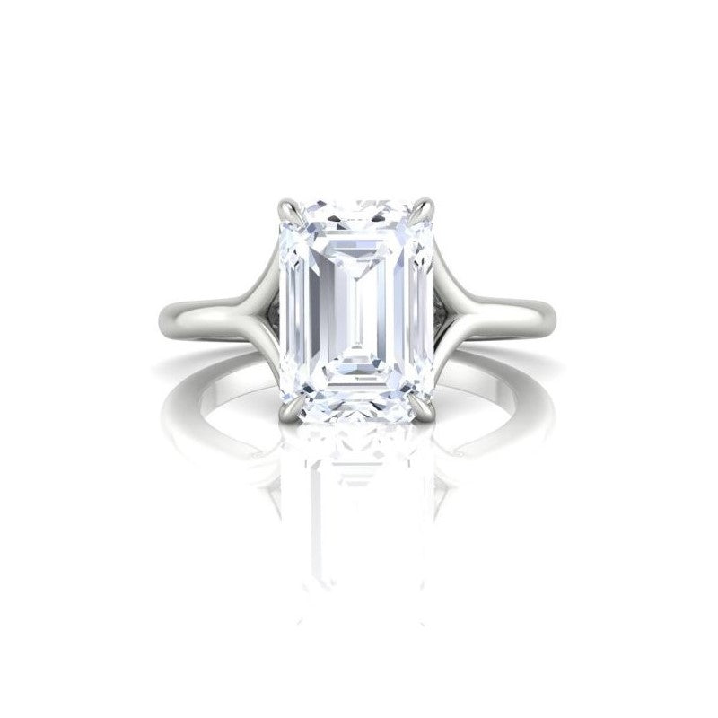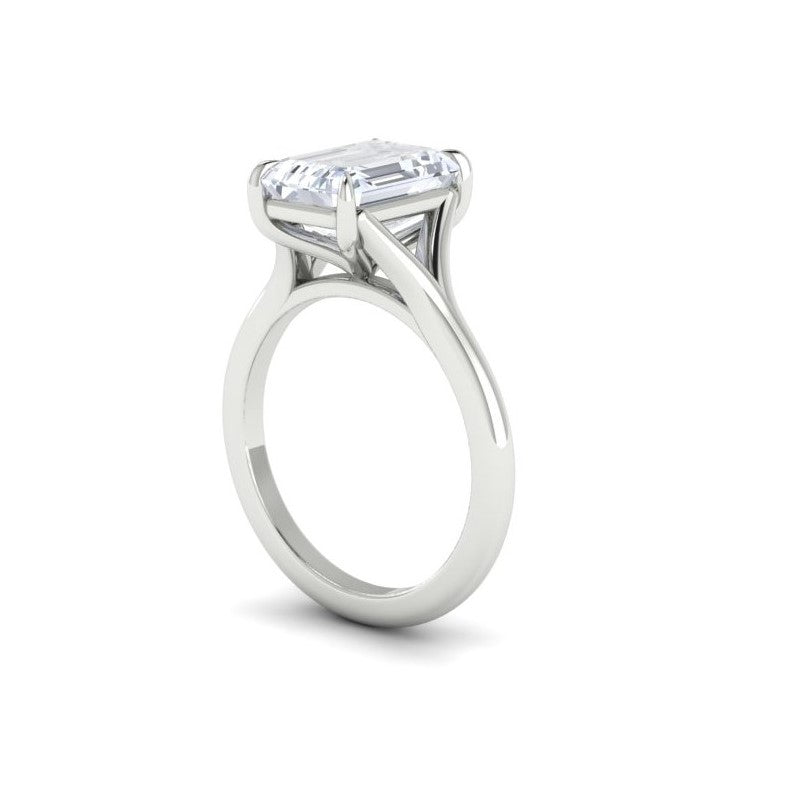 *Platinum engagement ring set with (1) emerald cut diamond weighing 3.03cts. Color: J; Clarity: VVS1. Finger size 5.5.