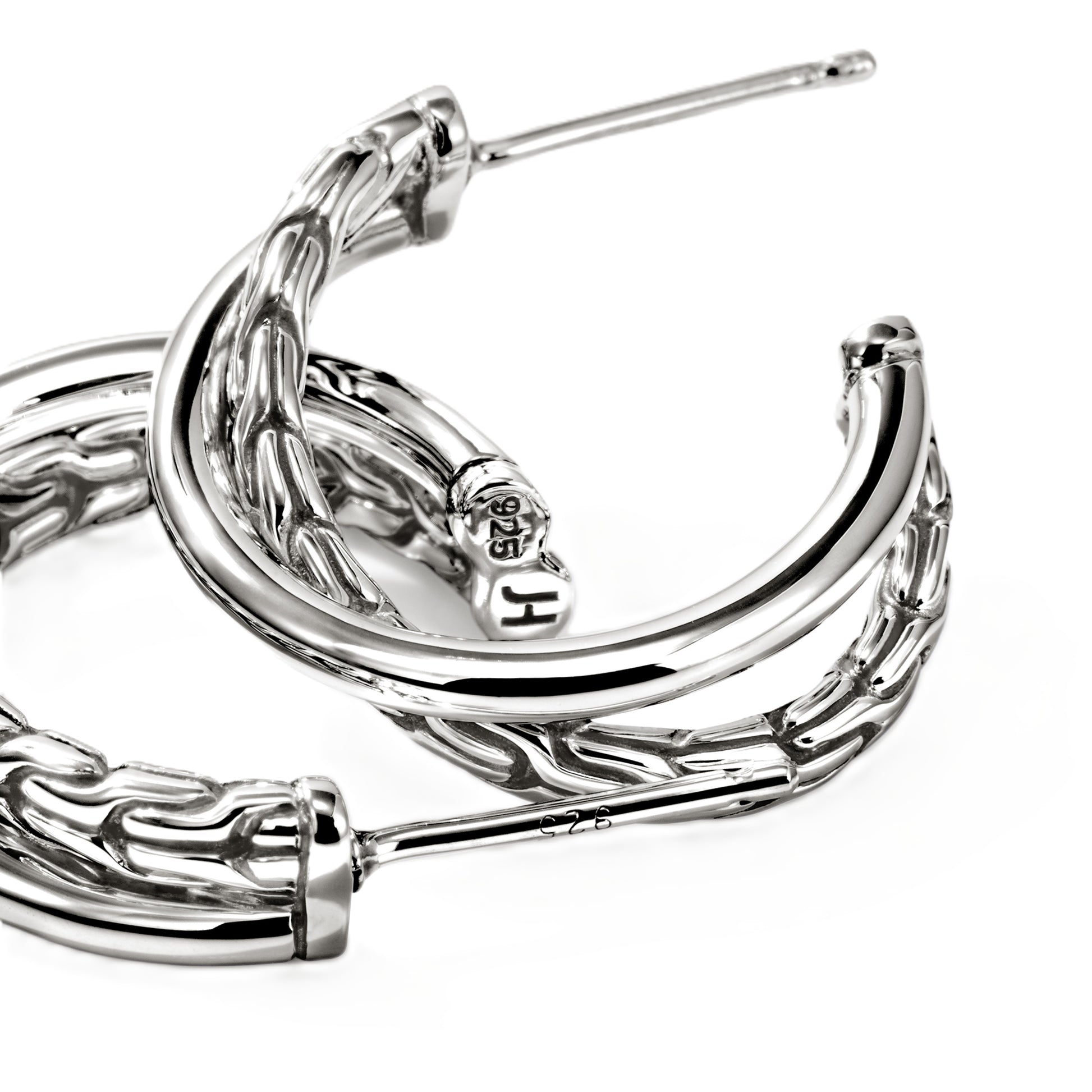 Sterling silver JH Essentials crossover 20.5 mm X 6.5 mm earrings with post backs.