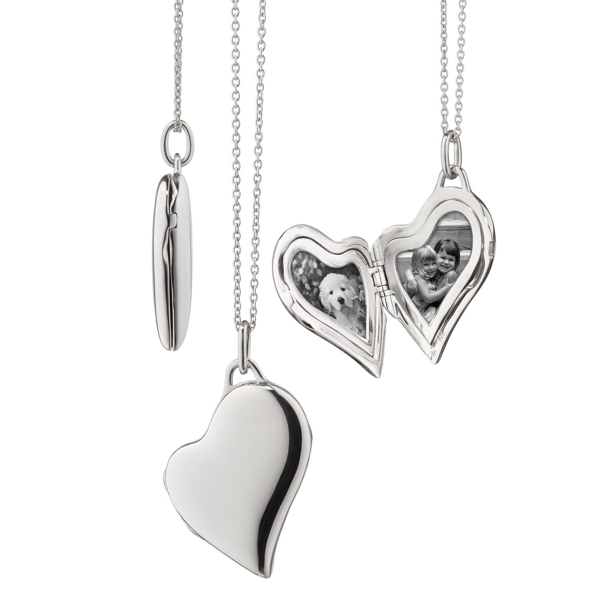 Sterling Silver asymmetrical slim heart locket on a cable chain in 18 to 20 inches with a lobster clasp.