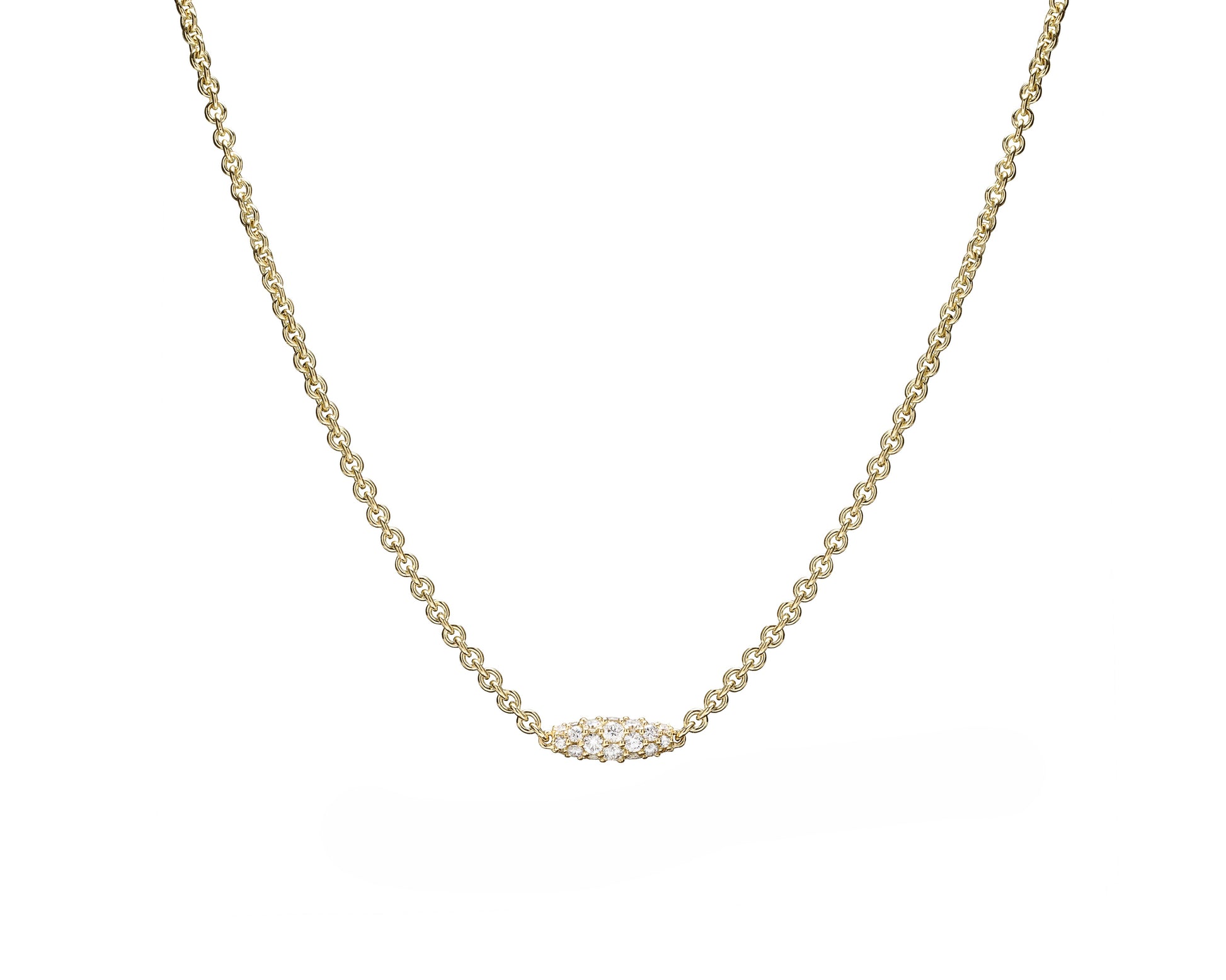18K yellow gold Pipette necklace with (37) round diamonds totaling 1.19cts, Color: F-G; Clarity: VS2. The necklace is 18 inches.