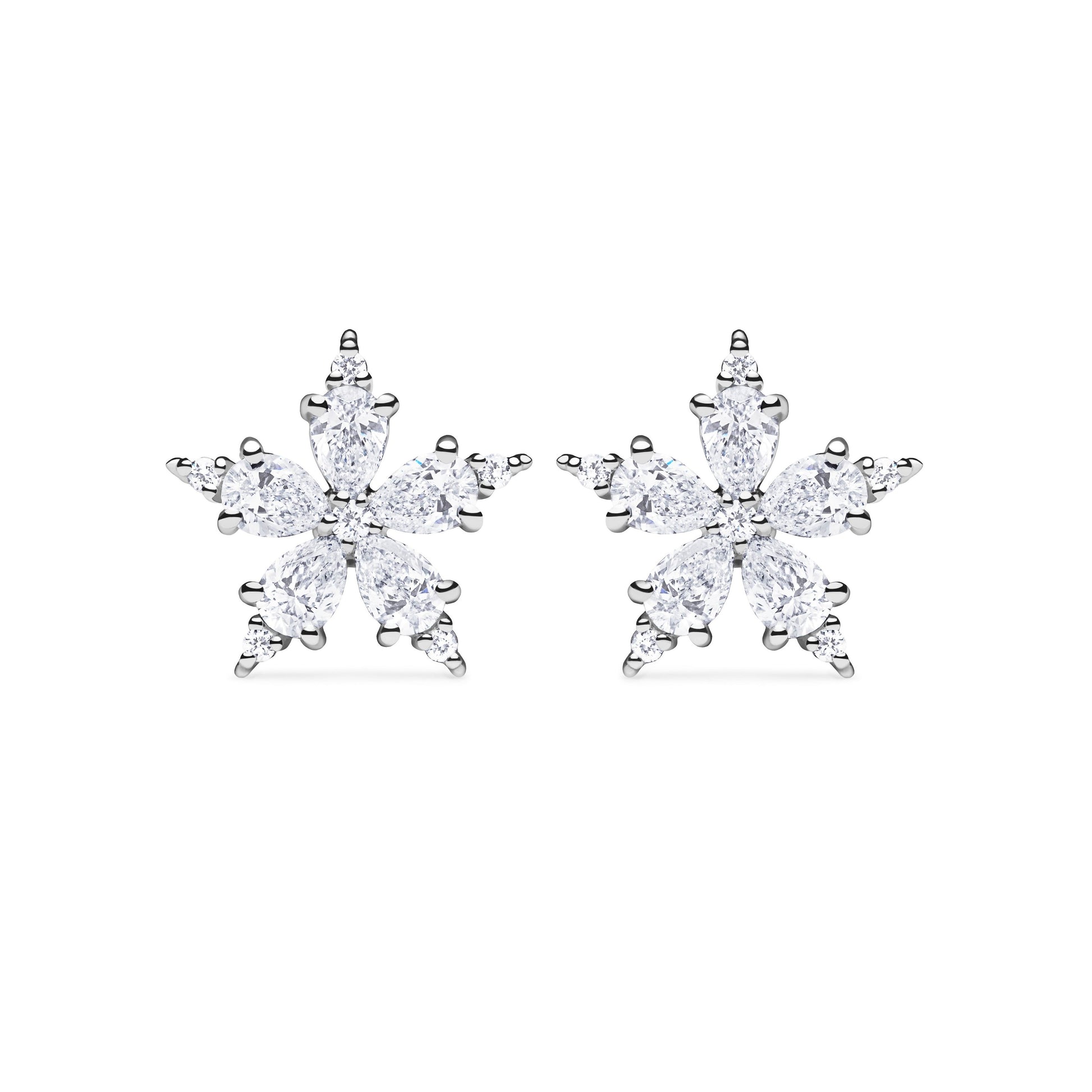 18K White Gold Mini Stellanise Stud Earrings Set with 10 Pear Shape Diamonds Totaling .52ct., F/G Color, VS2 Clarity and 12 Round Diamonds Totaling .12ct., F/G Color, VS2 Clarity with post backings.