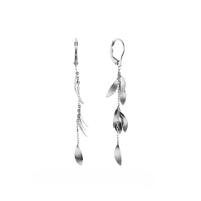 Platinum Petal Play drop earrings with lever backs.