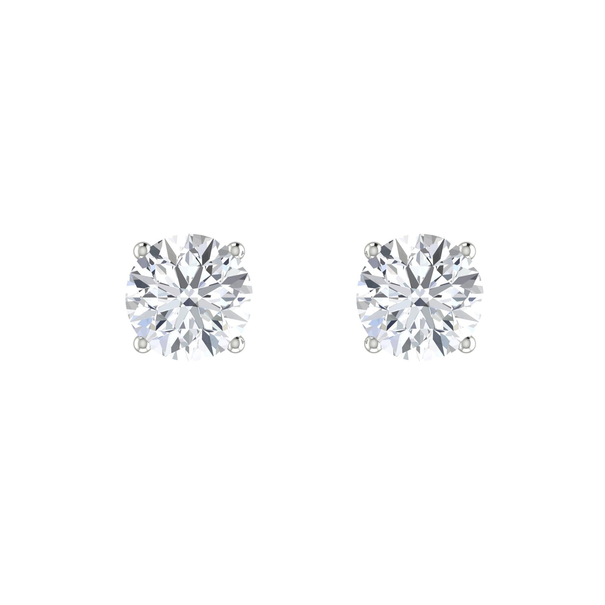 14K white gold diamond stud earrings totaling 2.37cts. Color: E-F; Clarity: I1. Set in (4) prong martini mountings with jumbo push backs. (No Certs)