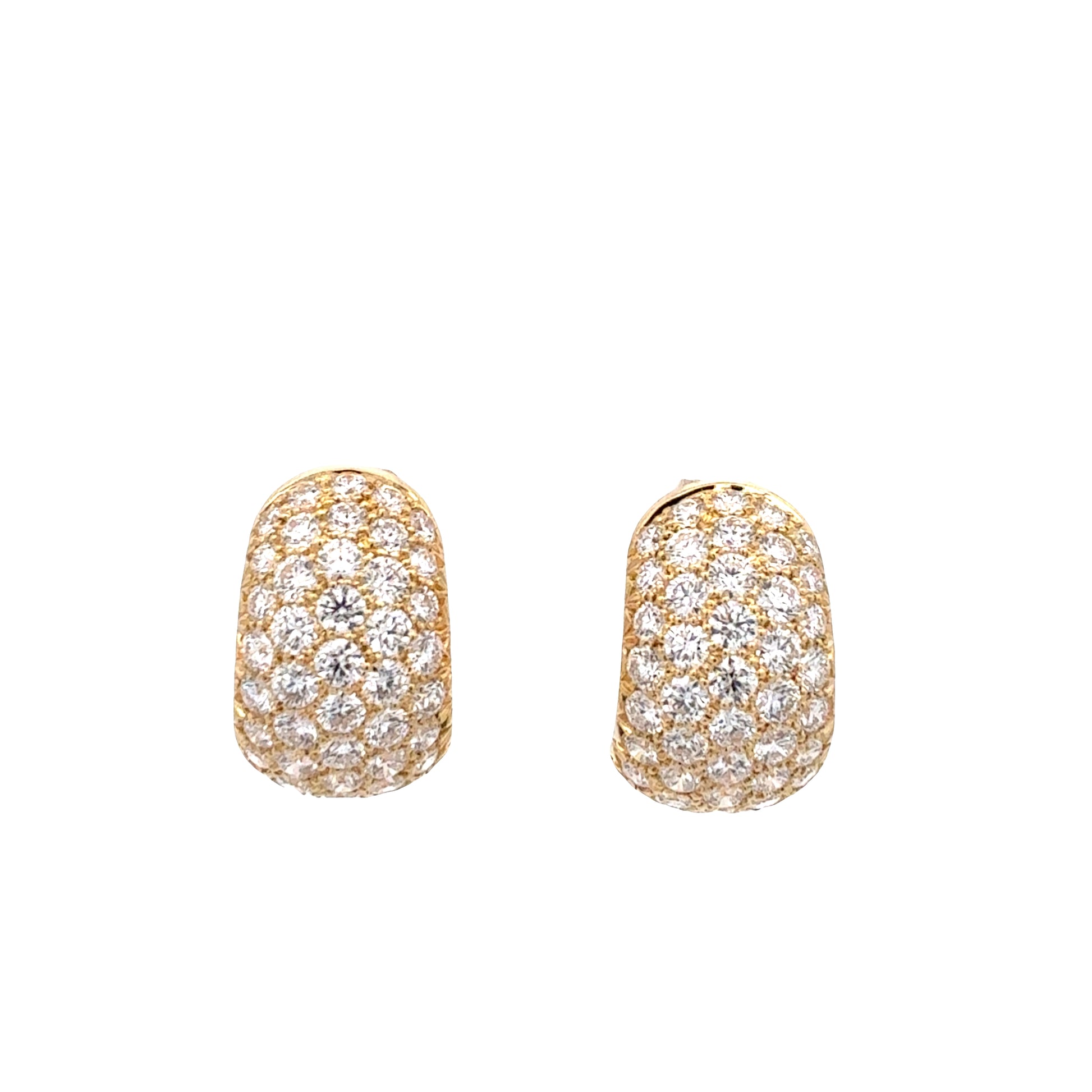 18K yellow gold huggie earrings set with (78) round white diamonds totaling 2.44cts.