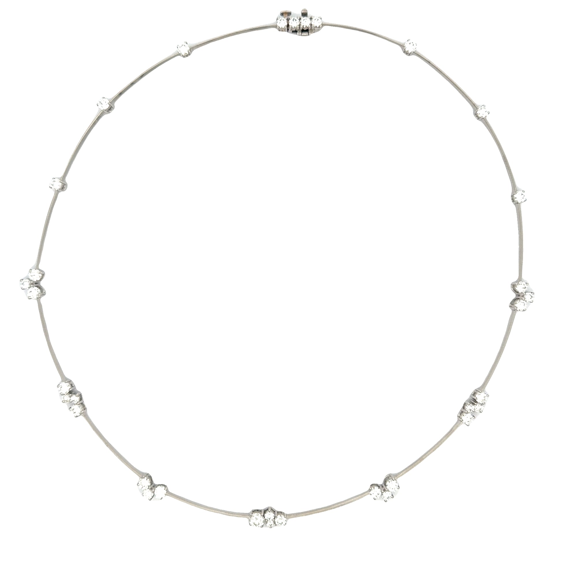 Platinum wire necklace set with (34) round diamonds totaling 3.40cts, Color: FG; Clarity: VS1.