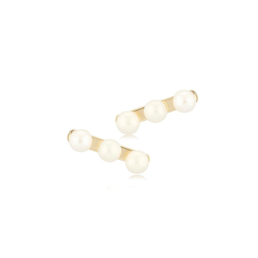 14K yellow gold bar earring with (6) 4 mm pearls. The earrings have post backs.